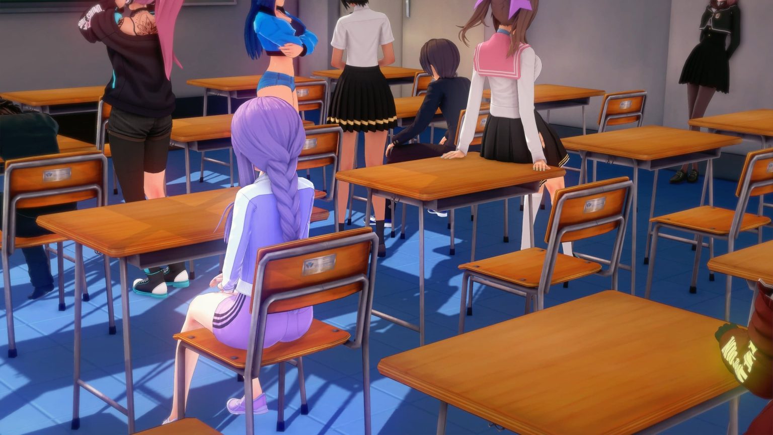 Персонажи, ну их много и будет ещё больше, модельки красивые и довольно оригинальные, хотя ГГ это типичная аниме тряпка, имейте ввиду. Анимации есть но сильно дёрганые, h-сцен нет, просто дразнилки и все.