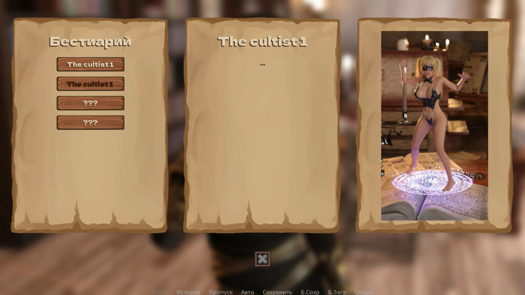 Много времени я посвятил общению с нейросетями — Джемини, Клауд, Грок, Дипсик и Алиса помогали мне настраивать внешность персонажей и генерировать идеи. В тесном сотрудничестве с Клаудом родился новый раздел игры — Бестиарий. Он будет находиться в библиотеке и позволит вам узнавать подробности о врагах, с которыми вы уже сталкивались в боях: их историю, слабости и связь с сюжетом.